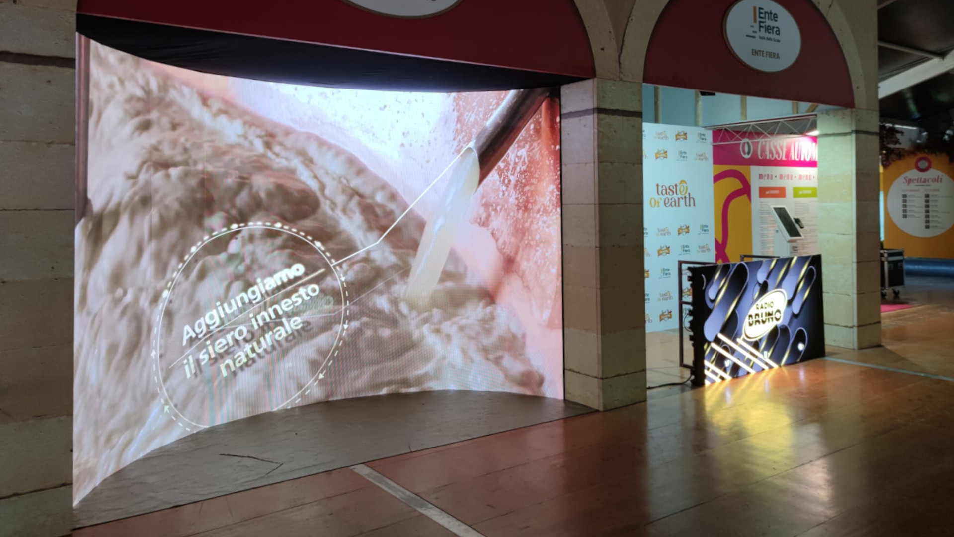 Per la Fiera del Riso di Isola della Scala (svolta dal 19 settembre al 12 ottobre 2025) e per Taste of Earth (dal 7 al 23 novembre 2025), Carboni Adv ha allestito gli schermi sospesi presenti nei padiglioni, i monitor collocati sopra le casse, il grande schermo curvo di Grana Padano e il ledwall della console di Radio Bruno, garantendo soluzioni visive di forte impatto. Inoltre, ha gestito diversi impianti luci e audio, per un’esperienza espositiva coinvolgente e di qualità.